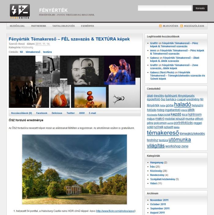 Szóval, a fényérték.hu-n van egy folyamatosan változó témájú fotópályázat, amely “Ősz” jeligéjű sorozatába beküldtem egy képet és az első helyen végzett.