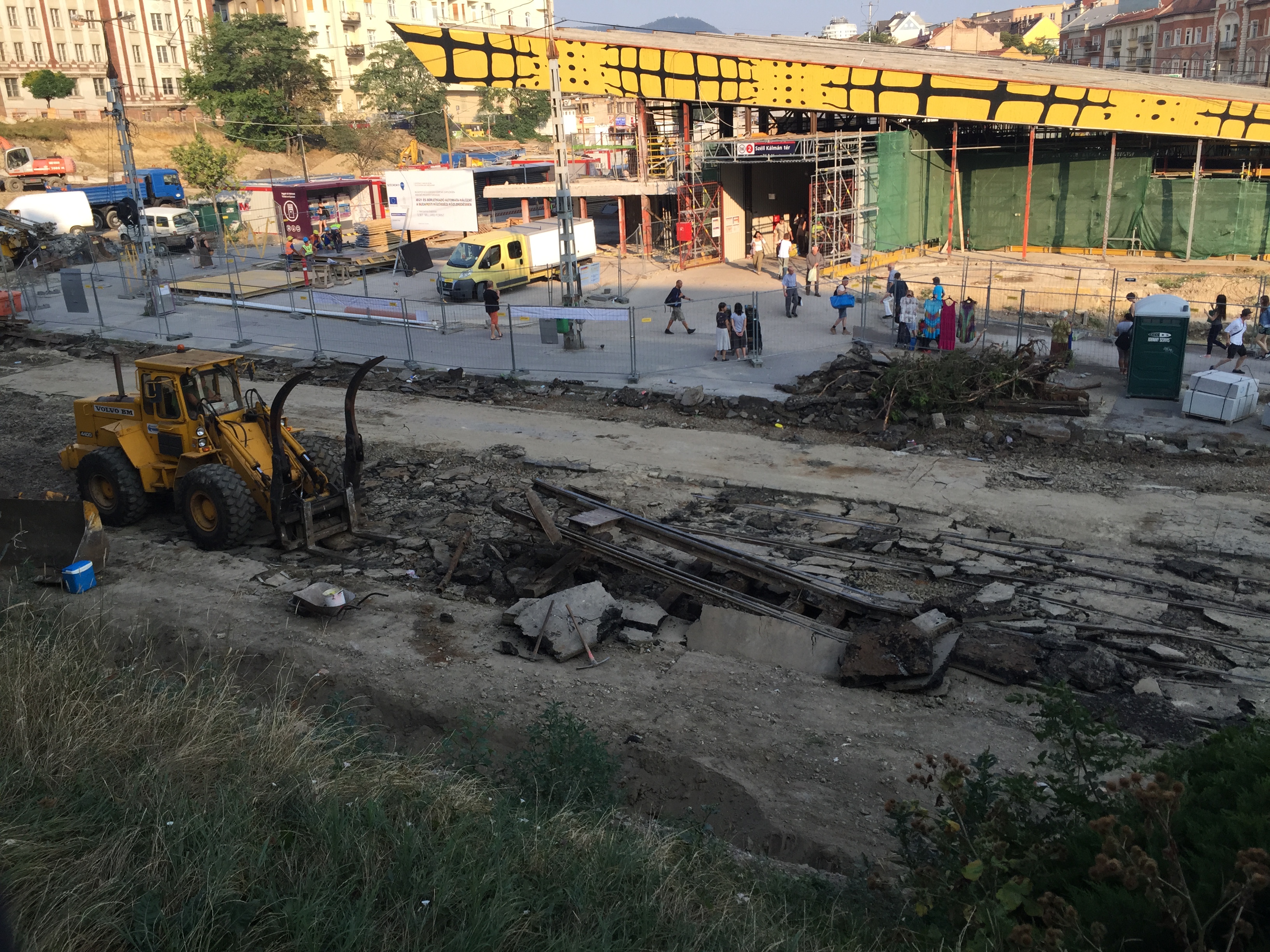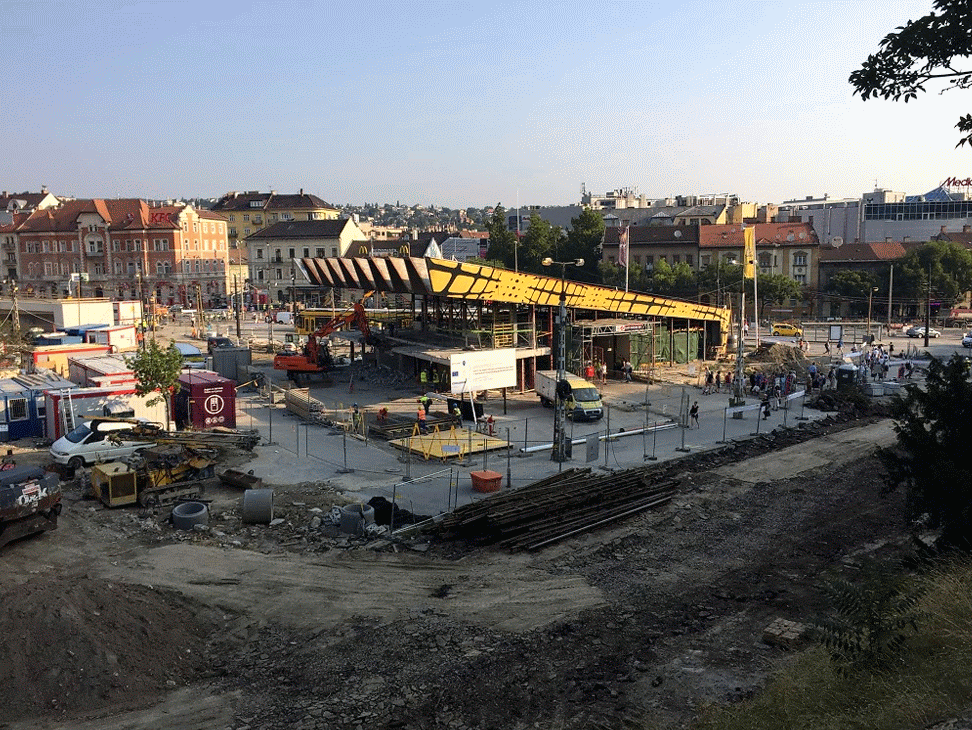 A tér korábbi középpontjában álló metróállomás épületébe szemből is beleharapott a markoló, érdekes lesz, lassan nem marad belőle semmi.