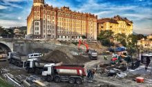 Ma reggeli állapot. A hét eleje óta régi, ipari csuklós Ganz villamosok járnak a 61-es és a 18-as vonalon (számomra ismeretlen okból). Érdekes módon a belül szűk, hangos szerelvények kívülről sokkal csendesebbek. Ezen a képen megtekinthető, hogy nemcsak hogy elhordták a korábbi hegyet, de a jó méteres plusz mélységű gödröt ásnak a sinek alapjainak, amelyet…